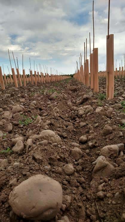 Naturally one might ask: why go through all this extra expense and effort to grow in the rocks? Well, the answer is simple…The Rocks District provides an extraordinary medium that motivates and inspires our liquid art form. The risks are real and our art requires that we take this risk. The reward? We love to share the funky wines grown in The Rocks District. We look forward to sharing wines from this vineyard with you in 2020. The anticipation is real!